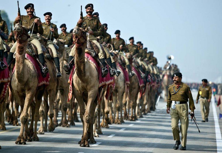 The 90-camels contingent, 54 with troops and the rest with band personnel, first became part of this national festival celebration in 1976 after it replaced a similar squad of the army which had been participating in the Republic Day parade since it first took place in 1950.