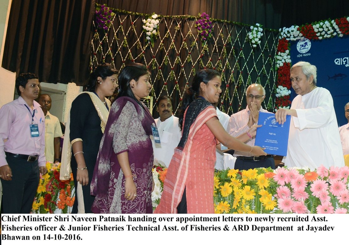 GalleryPhoto Chief Minister Shri Naveen Patnaik handing over appointment letters to newly recruited Asst. Fisheries officer & Junior Fisheries Technical Asst. of Fisheries & ARD Department at Jayadev Bhawan on 14-10-2016. By ReportOdisha Bureau - October 14, 2016 0 663 FacebookTwitterPinterestWhatsApp