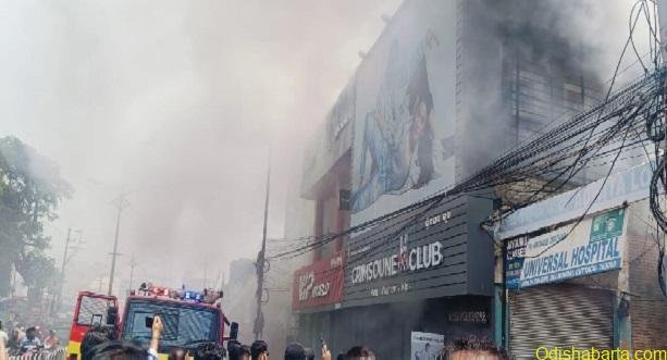 The buildings housed a number of popular brands of clothing, luggage and footwear. Two fire tenders were engaged to douse the fire in Cuttack based showroom. Later on three more fire brigades were used to bring the fire under control.