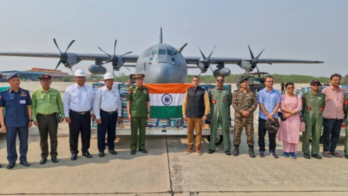 New Delhi: India on Saturday delivered a large consignment of food aid to quake-hit Myanmar at Thilawa Port in the southern coastal area to the Yangon region’s chief minister as part of its ongoing Operation Brahma.