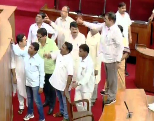 Bhubaneswar, Sept 26: After two days of long marathon discussion, the Mahanadi water issue again came back to stall Odisha Assembly today with the prevailing pandemonium by the Opposition parties. Soon after the House assembled, members of BJP and Congress rushed to the well and protested against the speech of chief minister Naveen Patnaik on the burning issue. Opposition chief whip, Tara Prasad Bahinipati climbed atop the reporters’ table while shouting slogan against the chief minister. Unable to run the question hour, Speaker Niranjan Pujari adjourned the House till 3 pm. Both Congress and BJP alleged that chief minister Naveen Patnaik is not keen to resolve the issue. Echoing similar view, Leader of Opposition Narasingha Mishra said the House wanted to know government’s future plan to safeguard Odisha’s interest over Mahanadi. BJD, on the other hand, held Opposition members for disrupting Assembly proceedings.