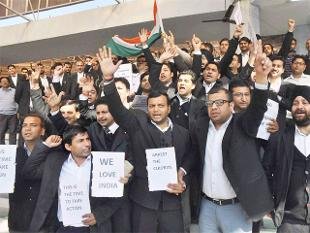 Some of the lawyers who were caught on camera leading brazen assaults on journalists and JNU students on Monday and Wednesday were part of the protest and appeared to be unfazed by the outrage due to their acts.