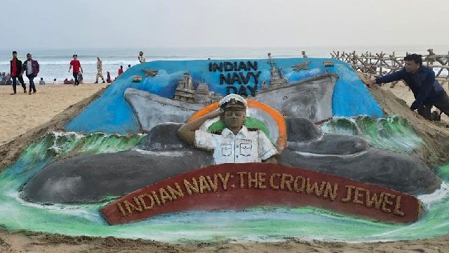 The sand art adds to the grandeur of the Indian Navy Day celebrations in Puri, this sand sculpture attention to the Navy’s excellence and inspiring admiration for its service.