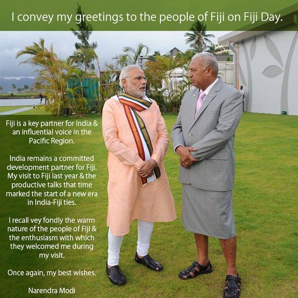 “I convey my greetings to the people of Fiji on Fiji Day”, Modi said.