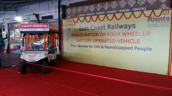 Bhubaneswar: The East Coast Railway on Saturday introduced a battery operated four-wheeler on the platform in Bhubaneswar station in its bid to provide facilities to physically challenged persons and the elderly.