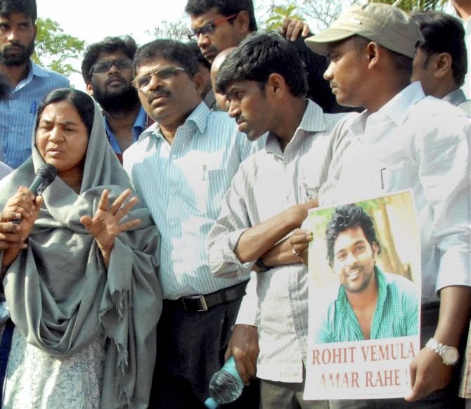“I want to know why he died. You killed or he died? Why was he suspended? Those responsible should be arrested and punished. That’s the only thing I want,” she said. Raju said, “The Prime Minister says he (Rohith) was a son of Mother India. I am not big enough to talk about him (PM) …Why he did not speak for five days?”