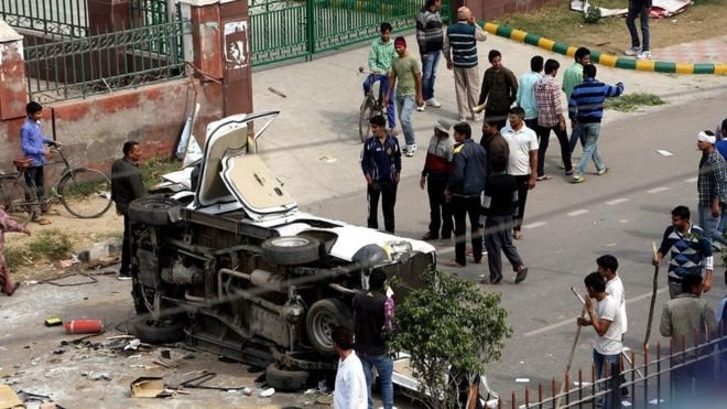 A police vehicle and some private vehicles, including a two wheeler, were also set on fire.