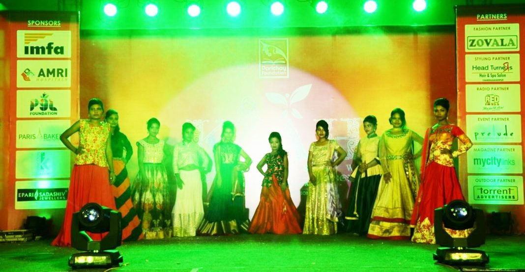 The Kiah Fashion Show was organized by a philanthropic organisation, Parichay Foundation, on the occasion of Children’s Day. The organization is engaged in promoting Indian art and culture and bringing about economic and social upliftment for underprivileged in urban and rural slums of Odisha and Delhi. The project focuses on girls who have dropped out of school, mostly after Standard 8th for financial constraints but have an inclination to pursue their education and pass their matriculation. In the first phase, the foundation has identified 56 girl students (following an entrance exam) from the outskirts of Bhubaneswar and also some from within the Salia Sahi slum, who would be enrolled under National Institute of Open Schooling (NIOS) by the foundation.