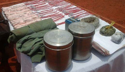 Koraput (Odisha): May 31: While doing a routine combing operation inside Pangiput forest area last night, BSF personnel recovered explosives and Maoist articles. The explosives recovered by the BSF personnel include 43 electric detonators, 19 gelatine sticks, 200 grams of gunpowder packed in two steel tiffin boxes, a bundle of electric wire and a pair of Maoist uniform. BSF intensified the combing operation in the area after the recovery of explosive materials, sources said.